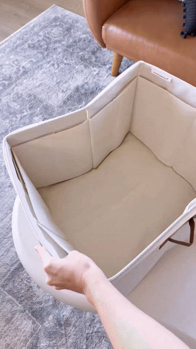 A diferencia de las cajas de plástico rígido, este organizador de tela aporta calidez y estética a tu vestidor. Su diseño cuadrado permite apilarlo o ubicarlo en los estantes altos o el piso del placard.